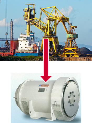 Taiyo generators act as a power source for special vehicles used to move and stack containers at harbors, the base for commodity distribution.
